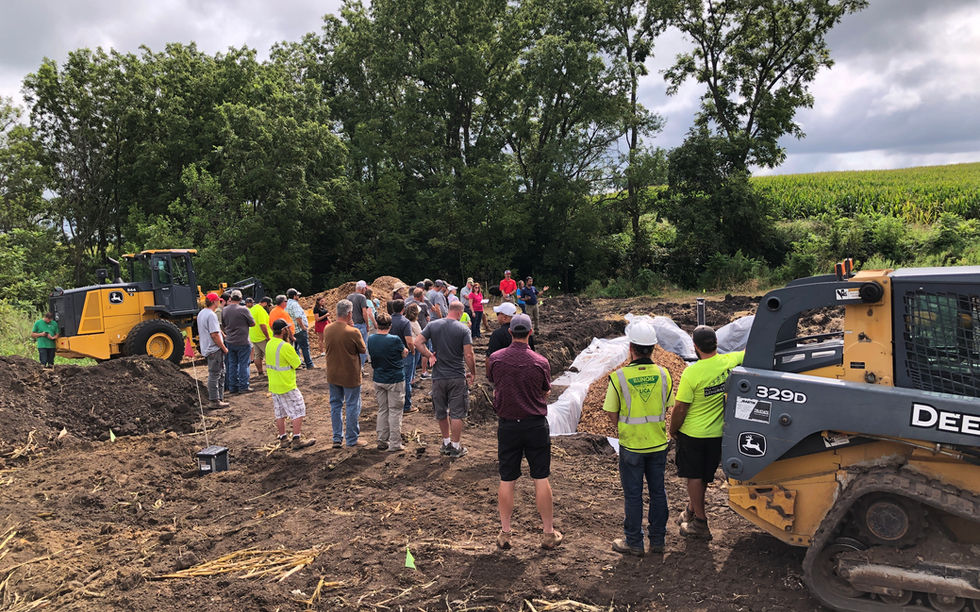 The Woodchip Bioreactor Partnership, comprised of Illinois Farm Bureau (IFB), Illinois LICA (ILICA), Illinois Natural Resources Conservation Service (ILNRCS), and the University of Illinois (UofI), installed their seventh woodchip bioreactor for the removal of nitrates from subsurface drainage water with additional support this year from the Fishers & Farmers Partnership. Complete with a public field day on August 19 on Ethan Koehler’s farm near Henry, IL, those on-hand (~50) learned exactly what the conservation drainage practice is, how it works, why it works, and where it works from a number of industry experts present throughout the event to answer questions and share their knowledge.